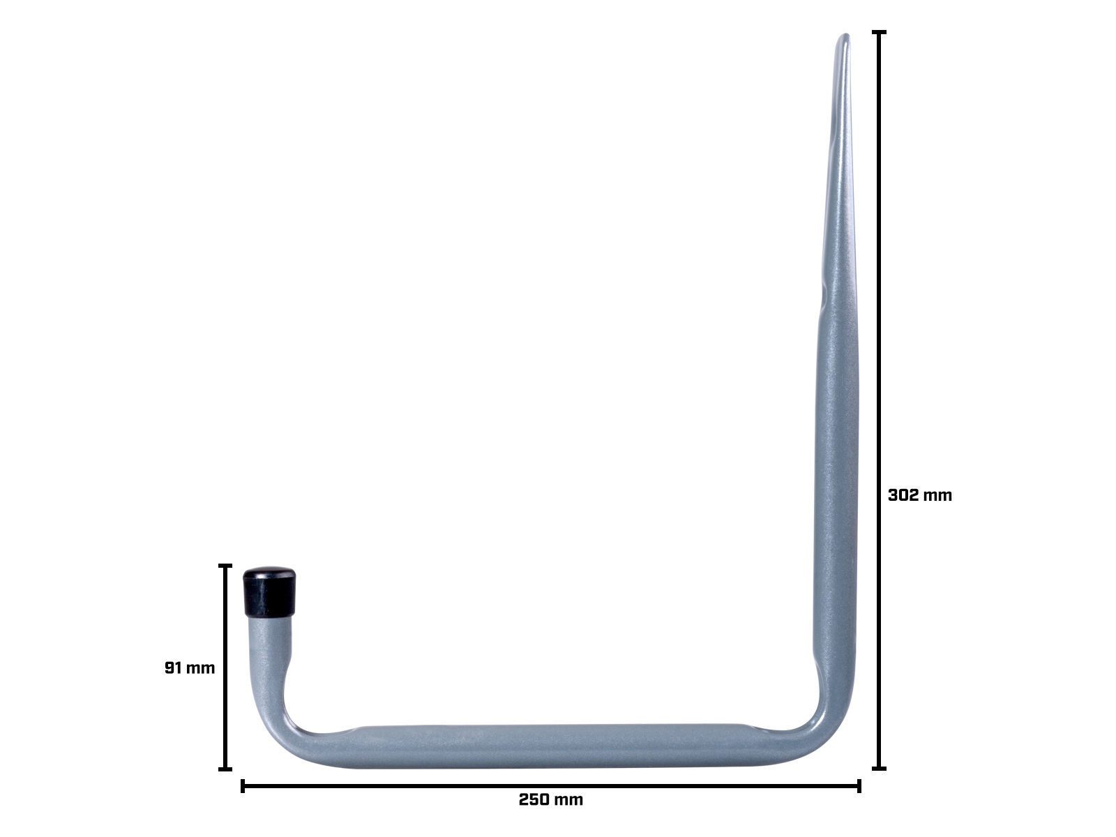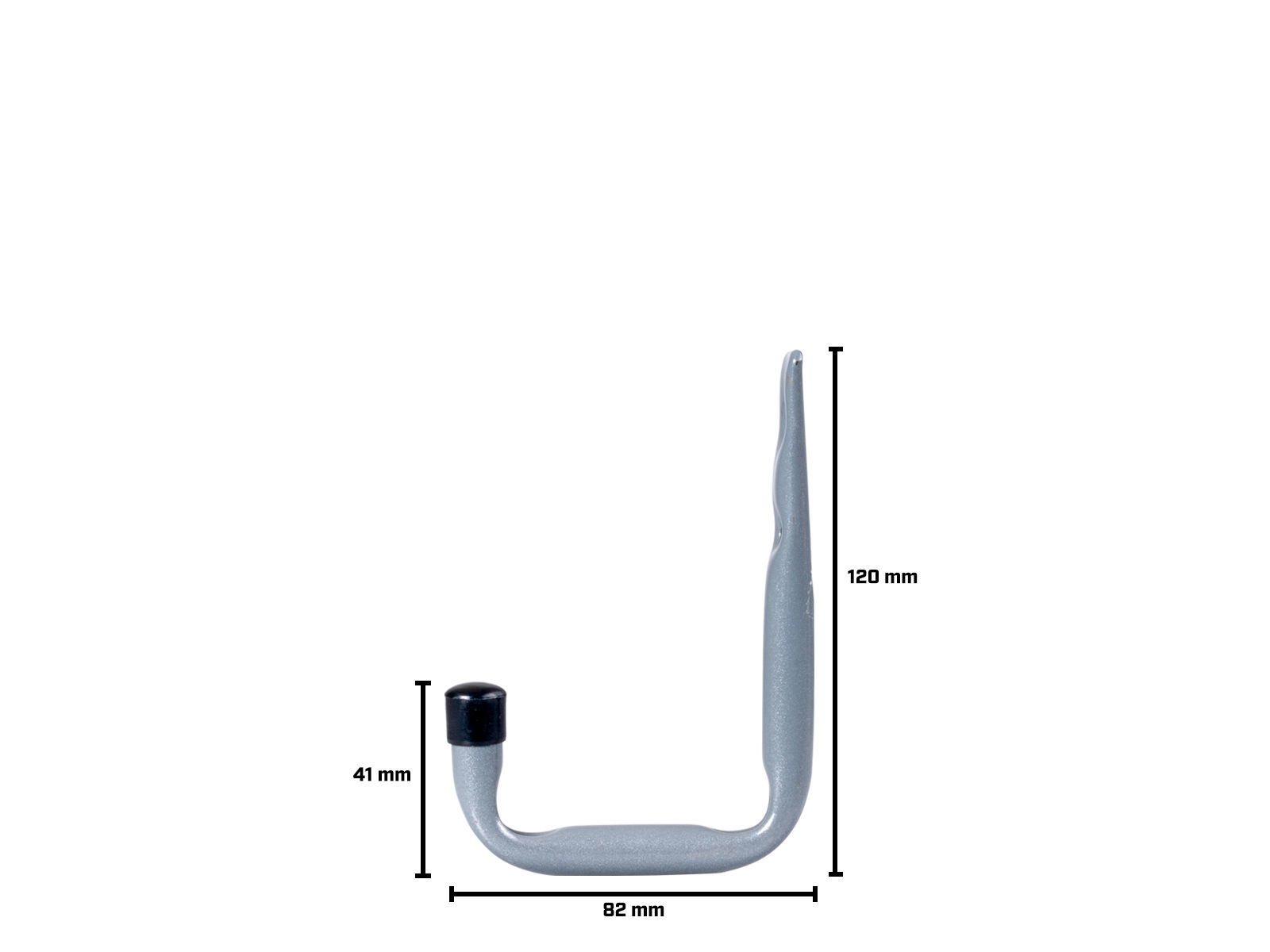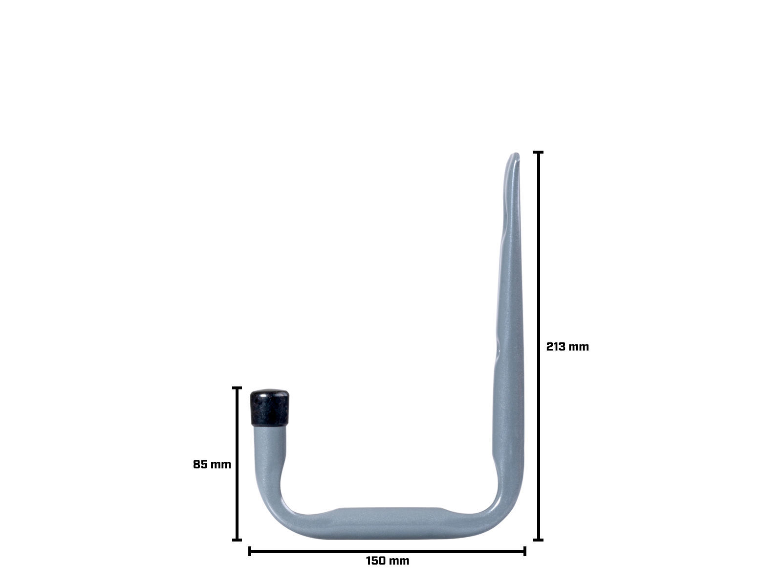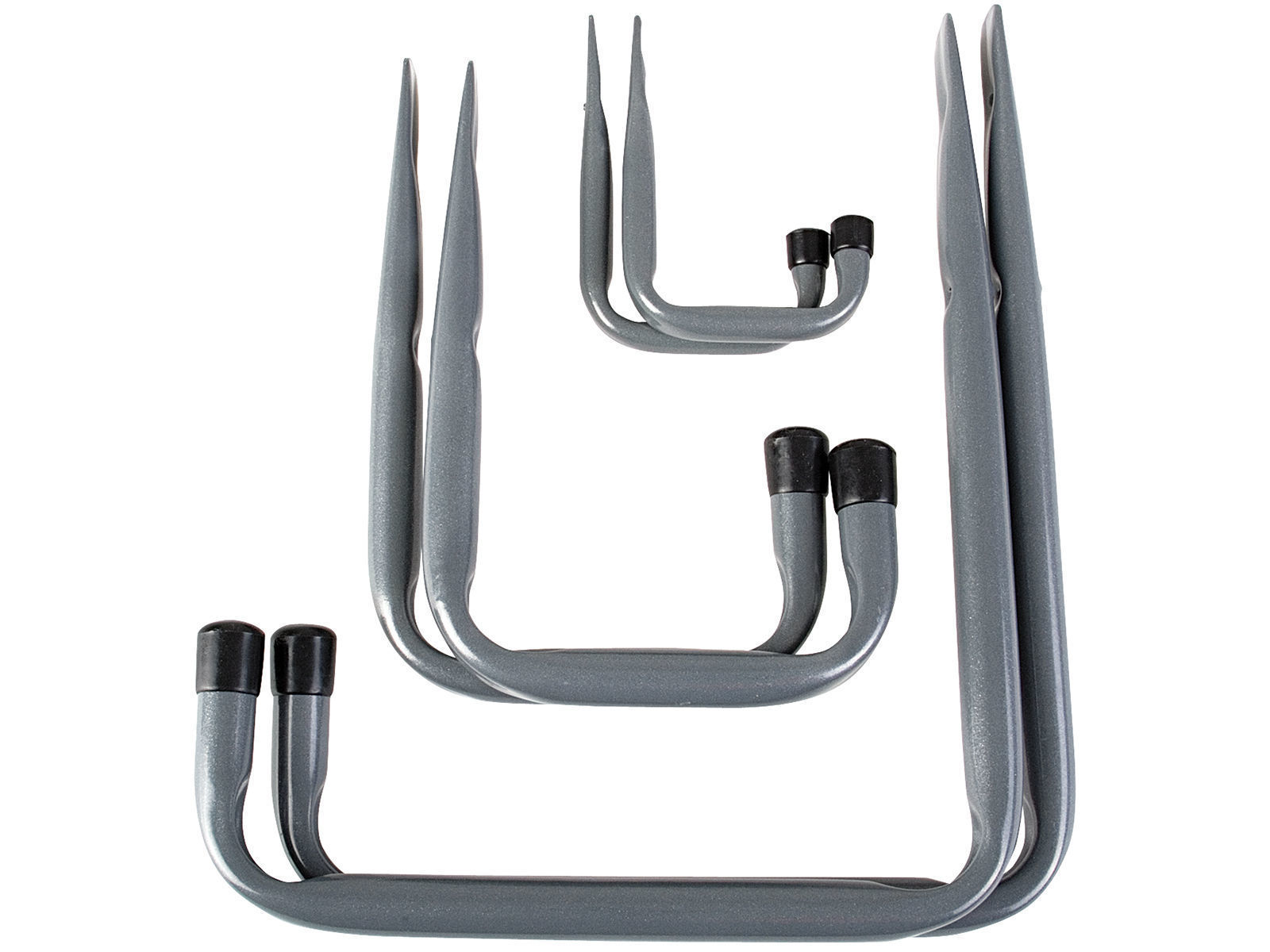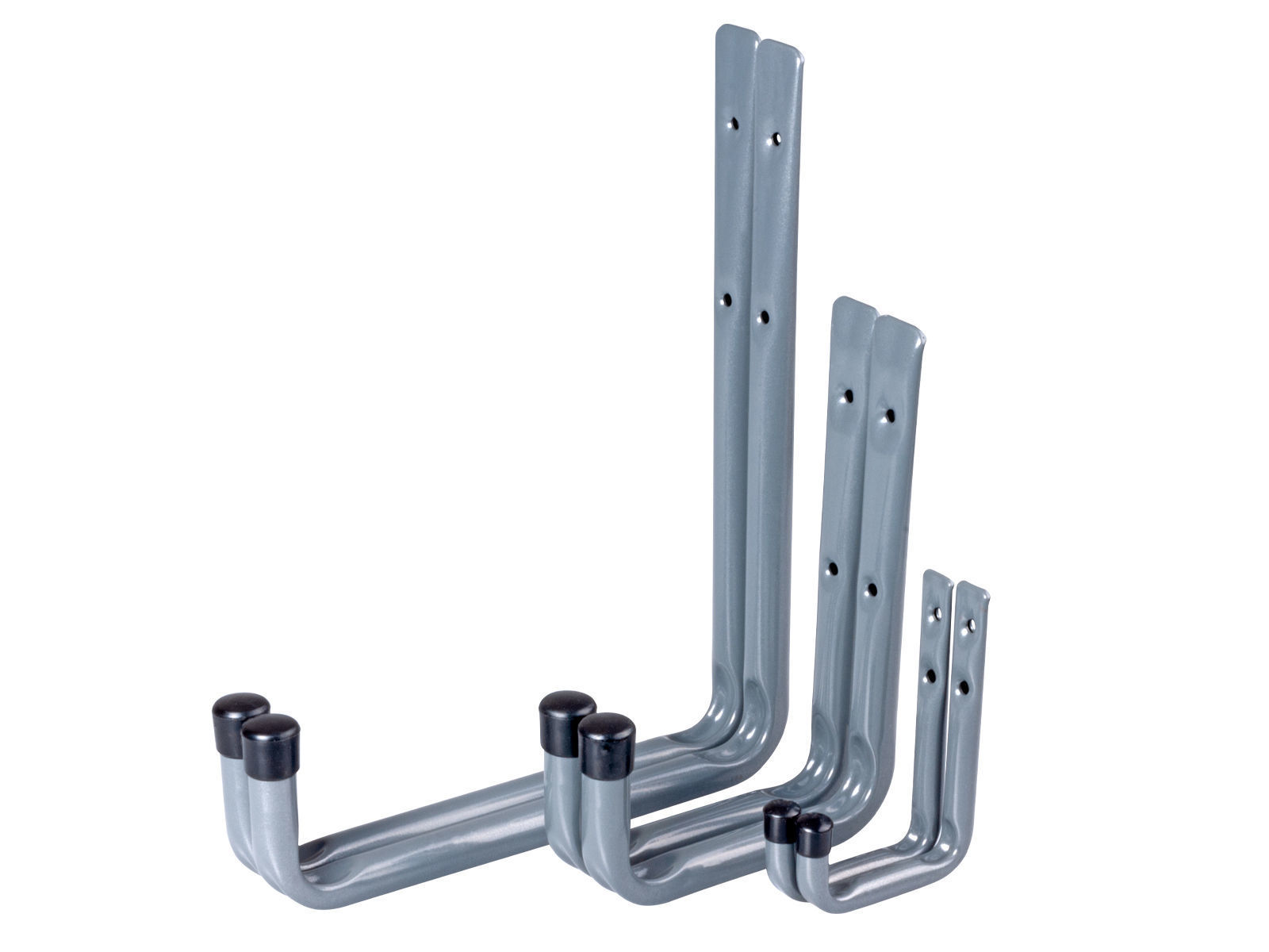 Sett med 6 stk. opphengskroker, utført i grålakkert stål. Til f.eks oppheng i garasje/bod.