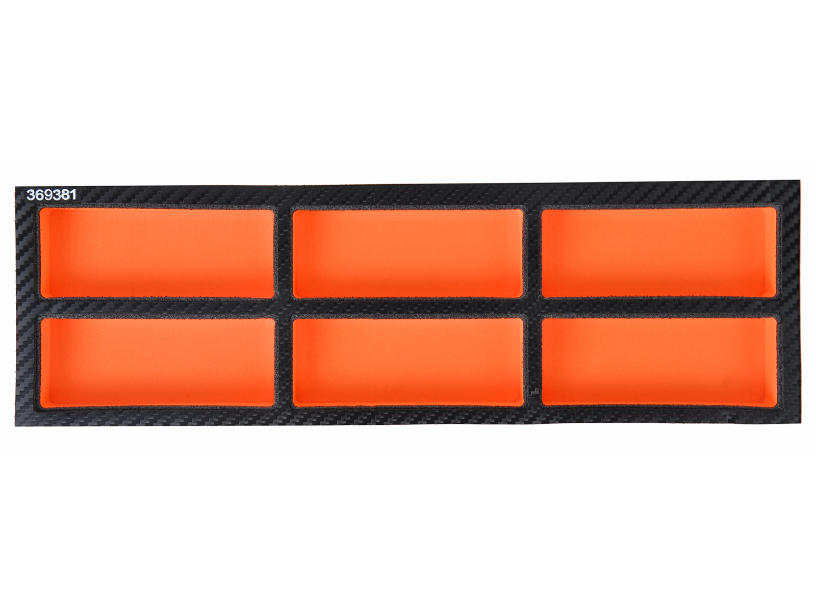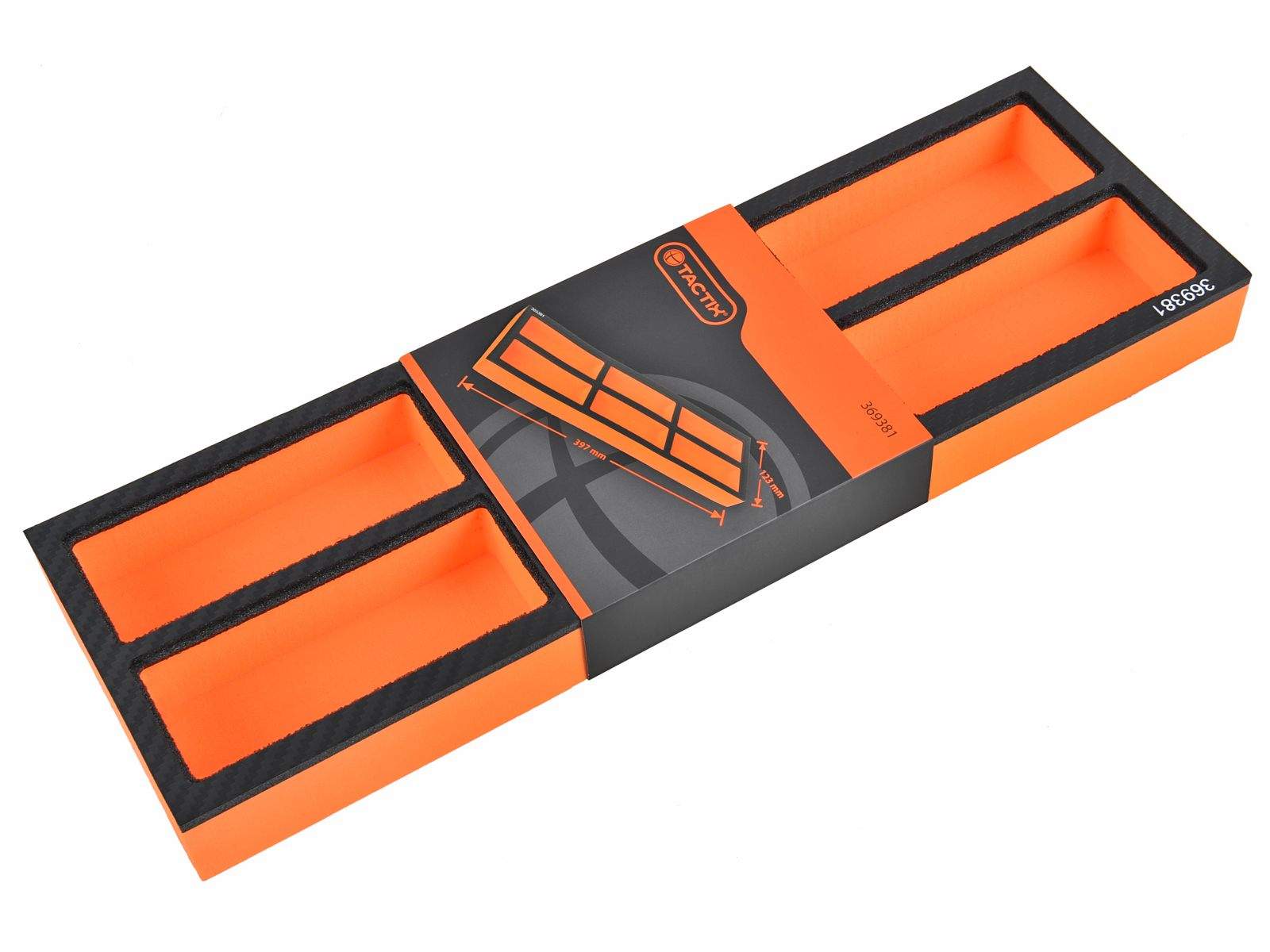 Skuffeinndeling med 6 rom for å organisere mindre verktøy, festemateriell og annet utstyr. Konstruert i slitesterk plast som er løsemiddel- og UV-bestandig. Mål (BxDxH) 397x123x42 mm.