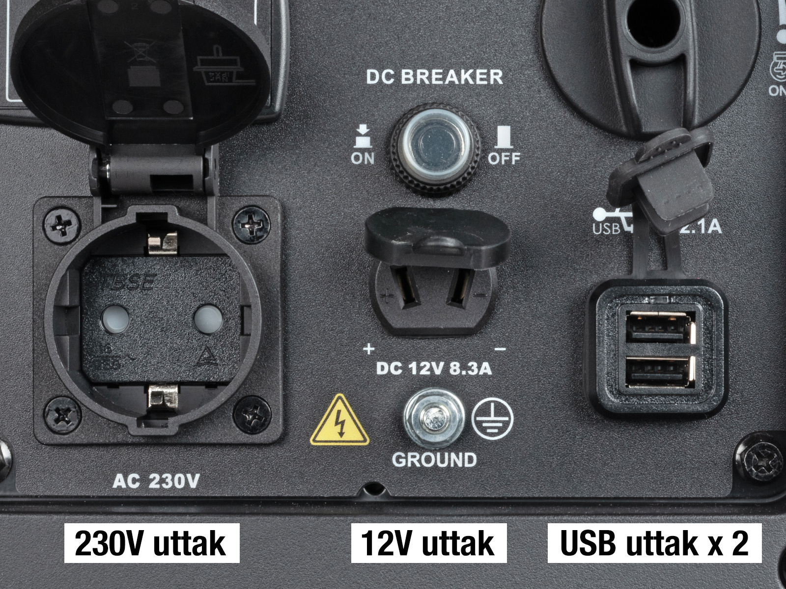 Renere, mer stillegående og pålitelig strømforsyning, en ren sinuskurve gir en jevnere strøm av meget høy kvalitet, faktisk bedre enn vanlig strømnett. Dette gjør at finelektronikk slik som PC, data, elektronikk, elektroverktøy mv. trygt kan benyttes. Flere muligheter for strømuttak; ett 230V uttak, ett 12V uttak og to USB uttak. Aggregatet er klargjort for parallellkobling med samme type aggregat for dobbel effekt.